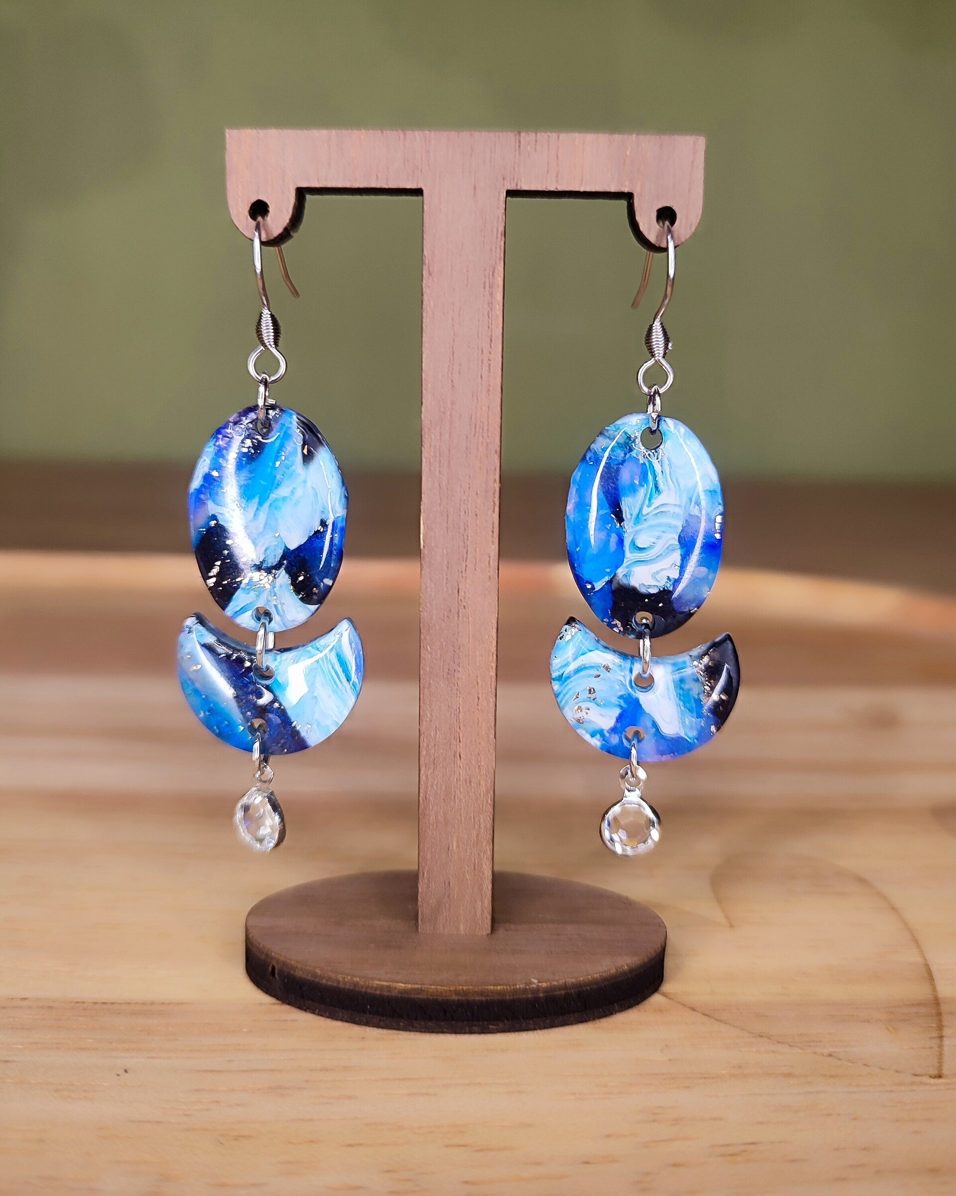 Pendientes azules óvalo lunar