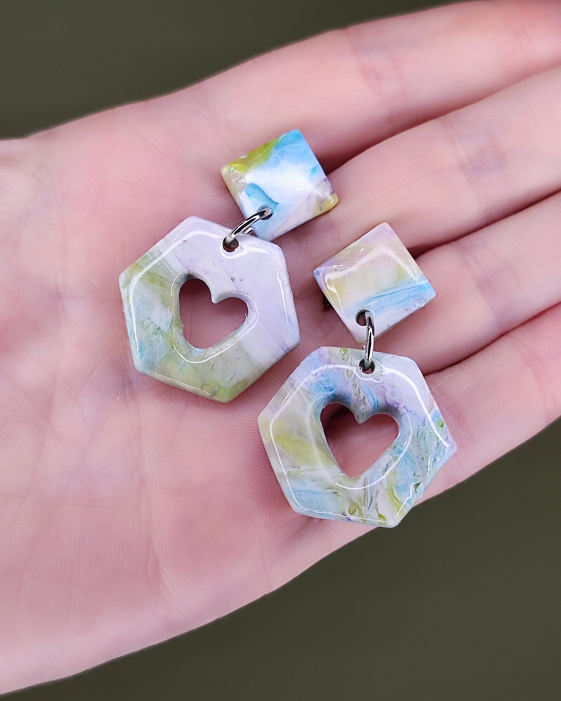 Joyería hecha en resina y arcilla polimérica. Cada pieza es el resultado de la mezcla de técnicas y colores que no se repiten, ¡no encontrarás colores planos, sino combinaciones con múltiples tonos y destellos! Diminutas de color para llevar cerca de la piel.